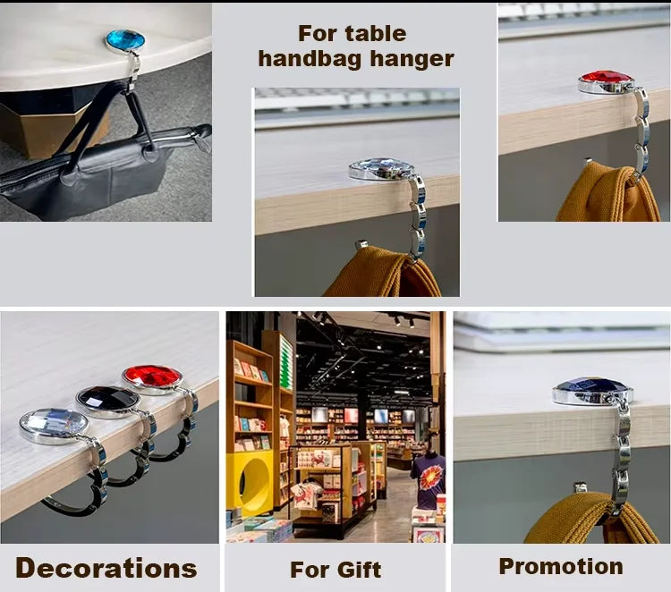 Heart Shape Handbag Foldable Bag Hook Fashion Crystal Rhinestone Foldable Bag Hook Purse Table Hanger Holder Alloy