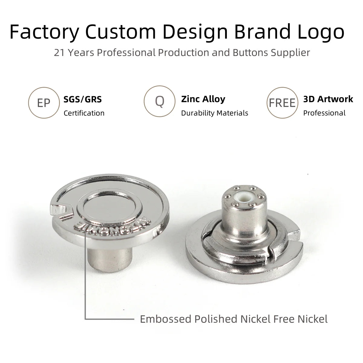 Richbutton 17 Mm Copper Nickle Sliver Double Prong Brass Jeans Rivets Open Cap Metal Button for Jeans